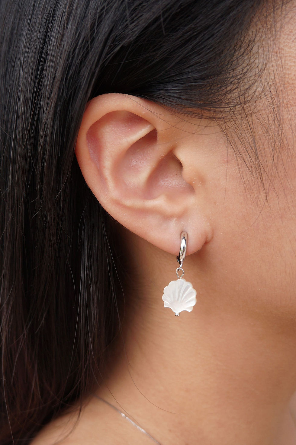 Aria Shell Huggies in Silver